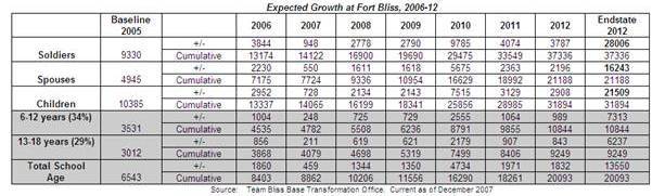In addition to the current population of veterans in El Paso, BRAC-planned growth for Fort Bliss will bring 28,000 additional soldiers to El Paso by 2012. Many of these people are likely to stay in El Paso beyond the soldier's active duty, increasing the veteran population further.