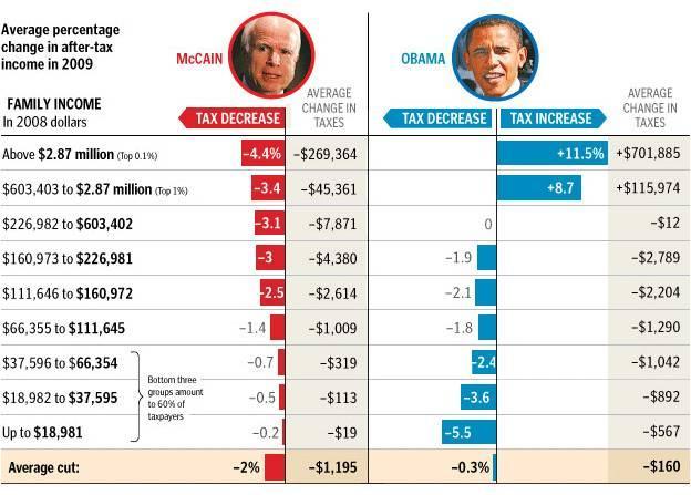 "Middle-class families get tax cuts that are three times larger from Obama than from McCain," Furman said. "And the McCain plan gives nearly one-quarter of its benefits to households making more than $2.8 million annually - the top 0.1%."