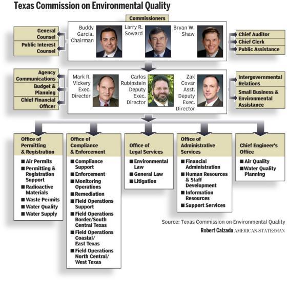 On the other hand, its mission statement explicitly ties environmental interests to business ones: "The Texas Commission on Environmental Quality strives to protect our state's human and natural resources consistent with sustainable economic development," the statement says.