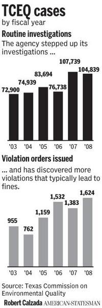 Fines by the Texas Commission on Environmental Quality, levied against everyone from the corner dry-cleaning business to Exxon Mobil, led to the elimination or reduction of 8.3 million pounds of pollution at a cost of $521 million to violators for things like the retrofitting of plants with new equipment, according to the agency's 2008 Enforcement Report.