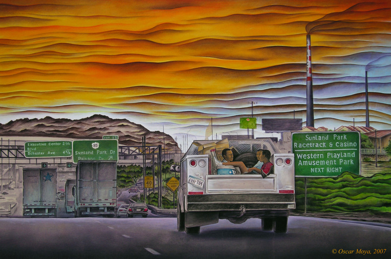 "Since moving to El Paso in 2005, I feel that I have come full circle as an immigrant. I first arrived in this country with my family in 1971 moving from Mexico City to San Antonio, Texas. Integration into the United States of America was easier at that time. In 2007, I started the “Maquila Blues” series of work to document my experiences and the experiences of those around me. My work “Ride Home” and "Desert Fruit Stand" are a part of that series."