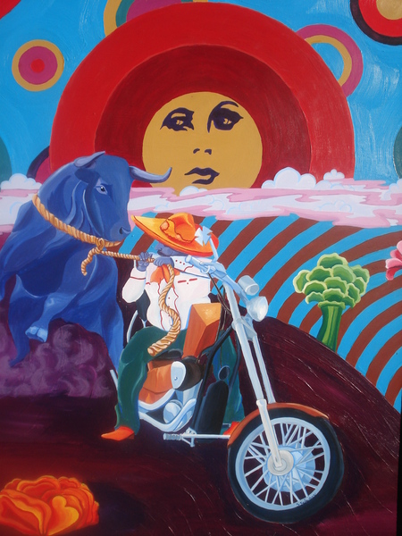 Steve Salazar is a professional artist and art educator at Bowie High School. A Chicano artist, Salazar describes his art style as "chicano-sur-pop-adelic."