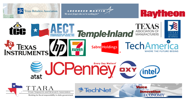 Similarly, a flyer delivered to our office last session listed a group of major Texas businesses and employers that, in their words, "do not support proposals that would allow local governments to take action resulting in a total local sales tax rate above the existing two percent cap." The businesses that signed are listed on the following page: