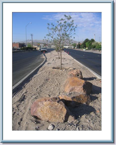 Here are some photos of the Mesa Median Project. Mesa is on the state road system. The Westside El Paso Pride group selected this project to build a better community some four years ago. Great leaders like Tracy Yellen and the owners of MIMCO raised matching funds which TXDOT and the City then matched to plant the desert willow and Afghan pines, buy the Franklin Mountain Red (boulders) and make Mesa the “Great Street” it ought to be.