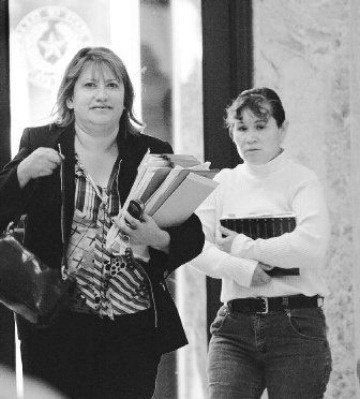 Guadalupe Carranza, right, arrives at the Lubbock County Courthouse with her lawyer, Lina Reyes-Trevino, for a hearing June 14. She is trying to move Luis to his grandparents' home in El Paso.